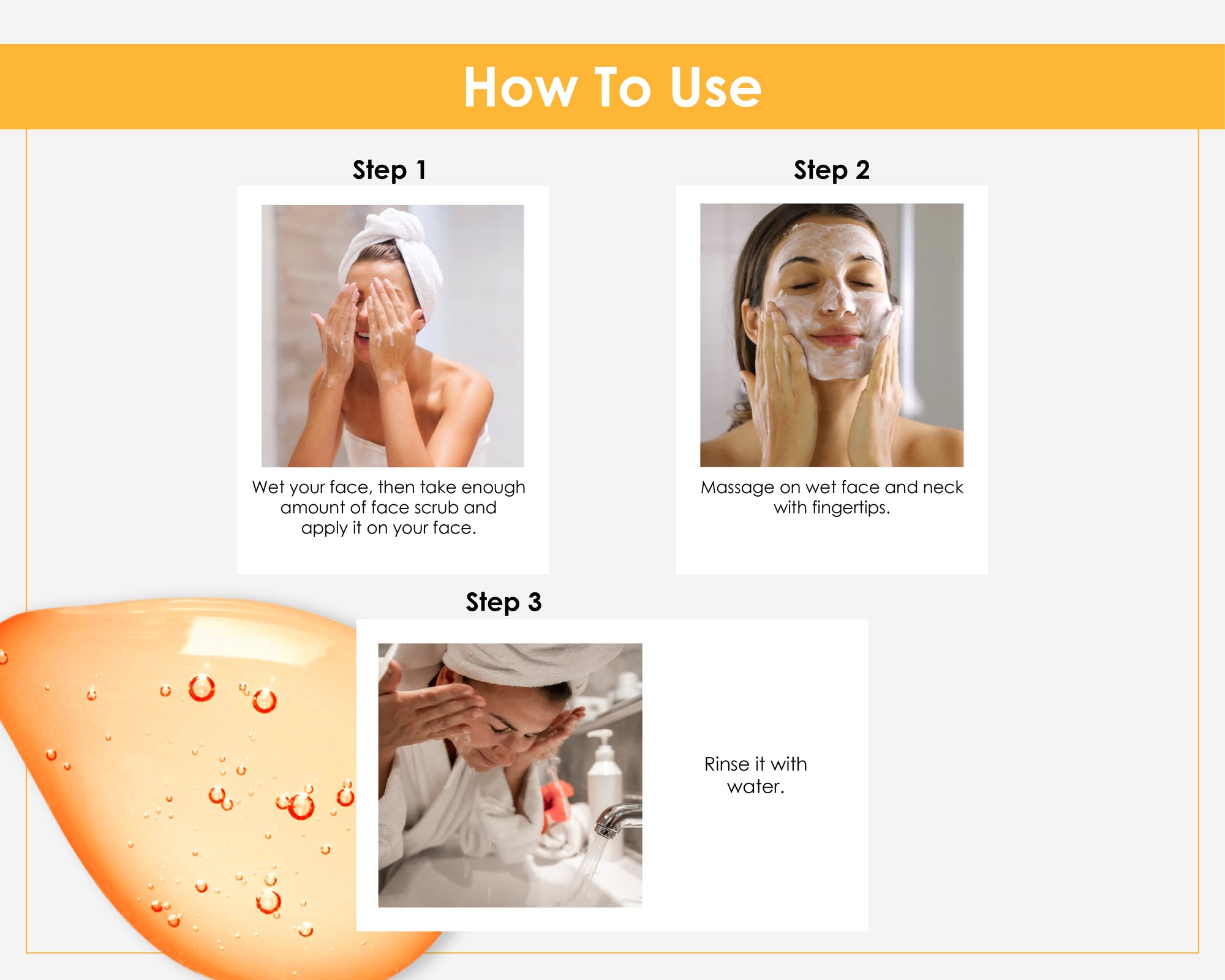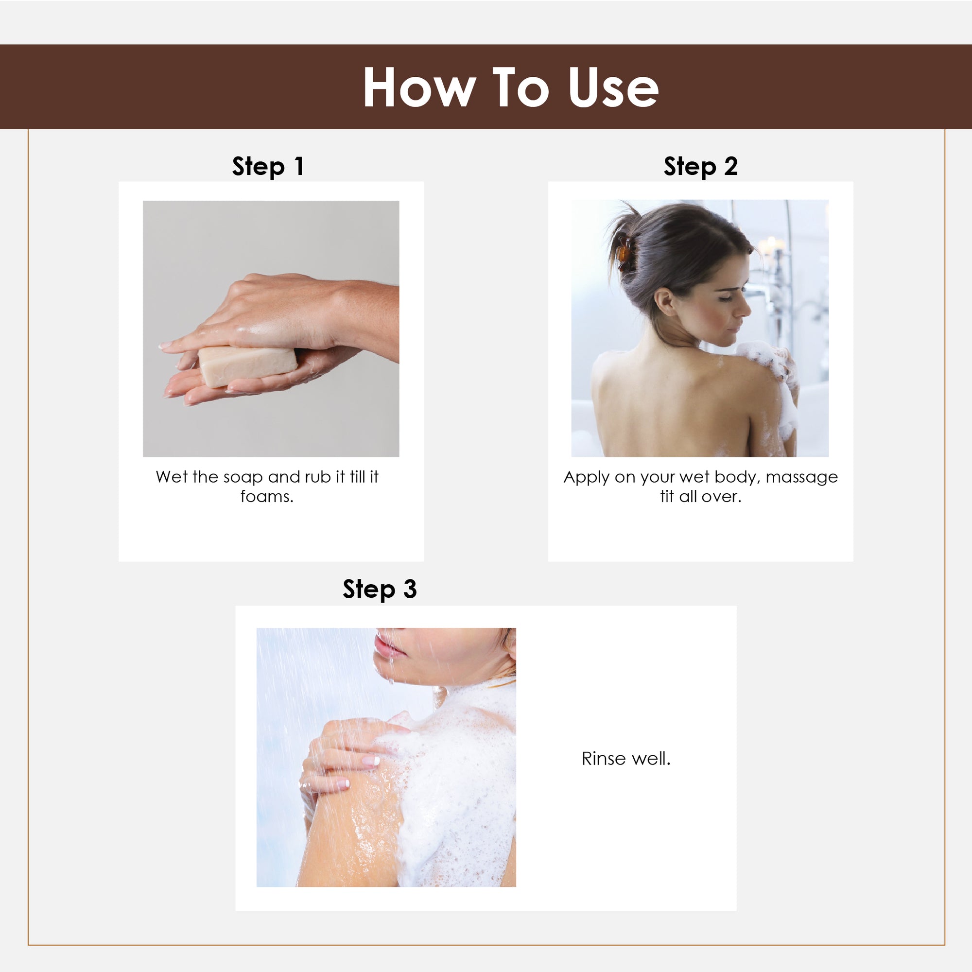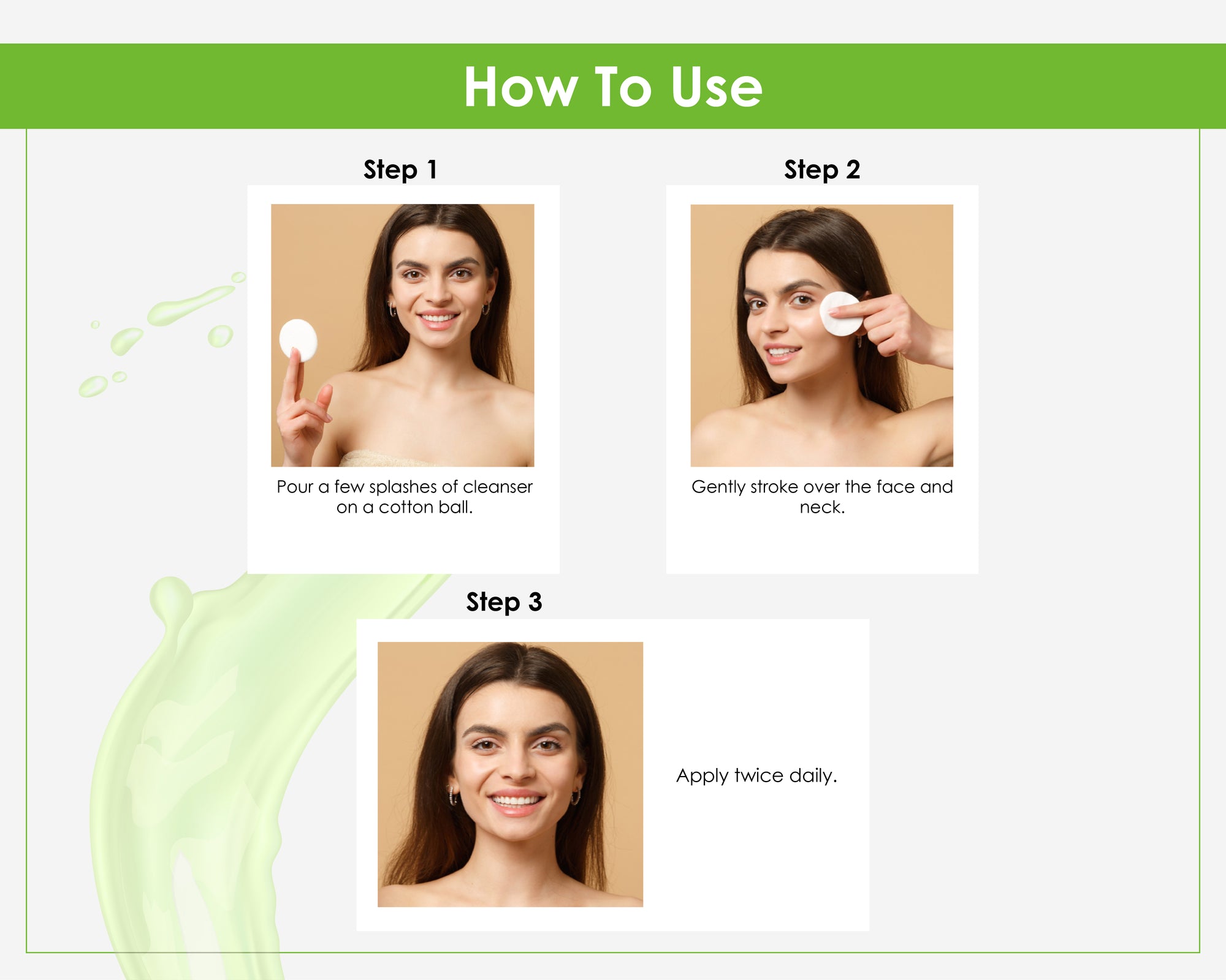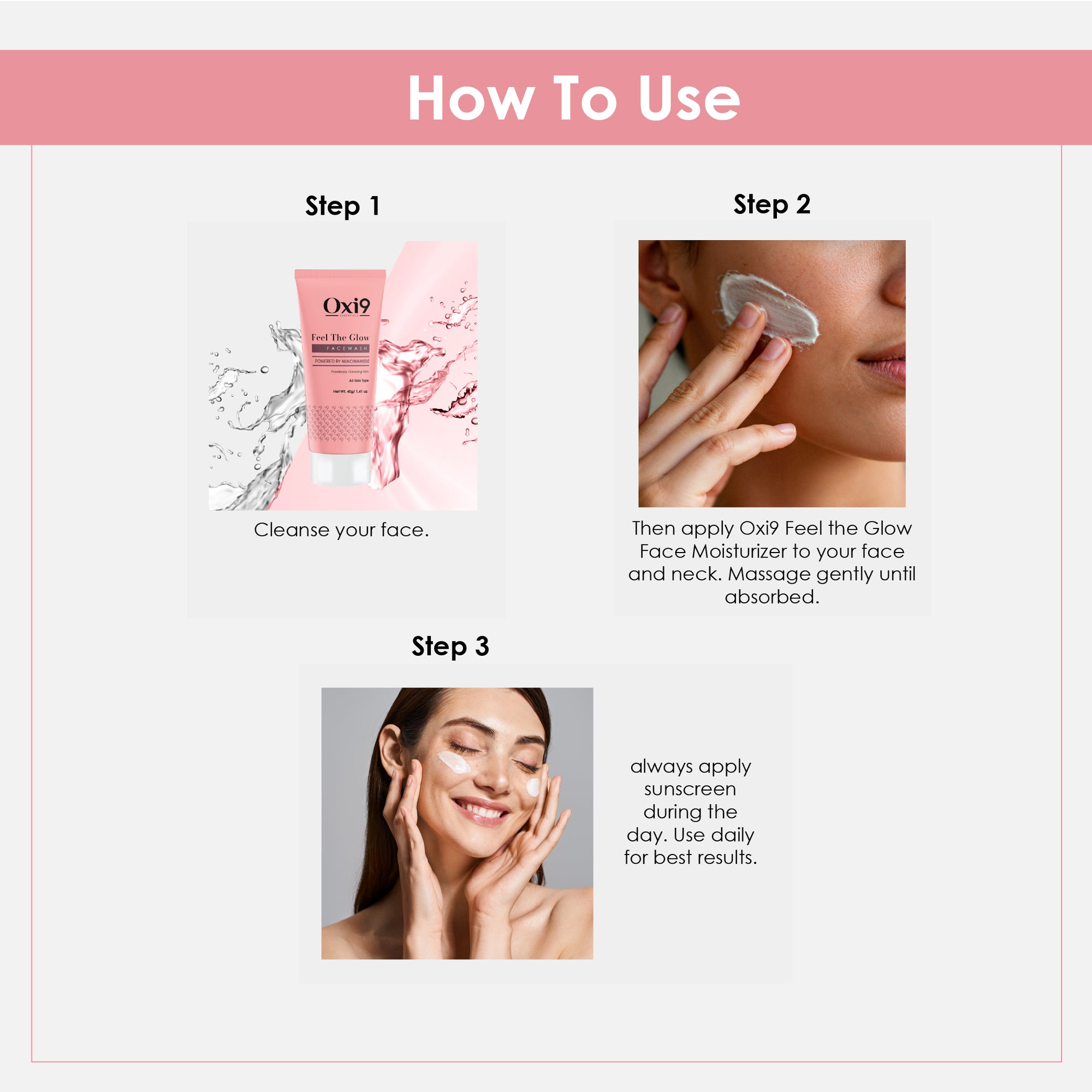 Step 1 – Shampoo: Apply to wet hair, massage gently into scalp, and rinse thoroughly.